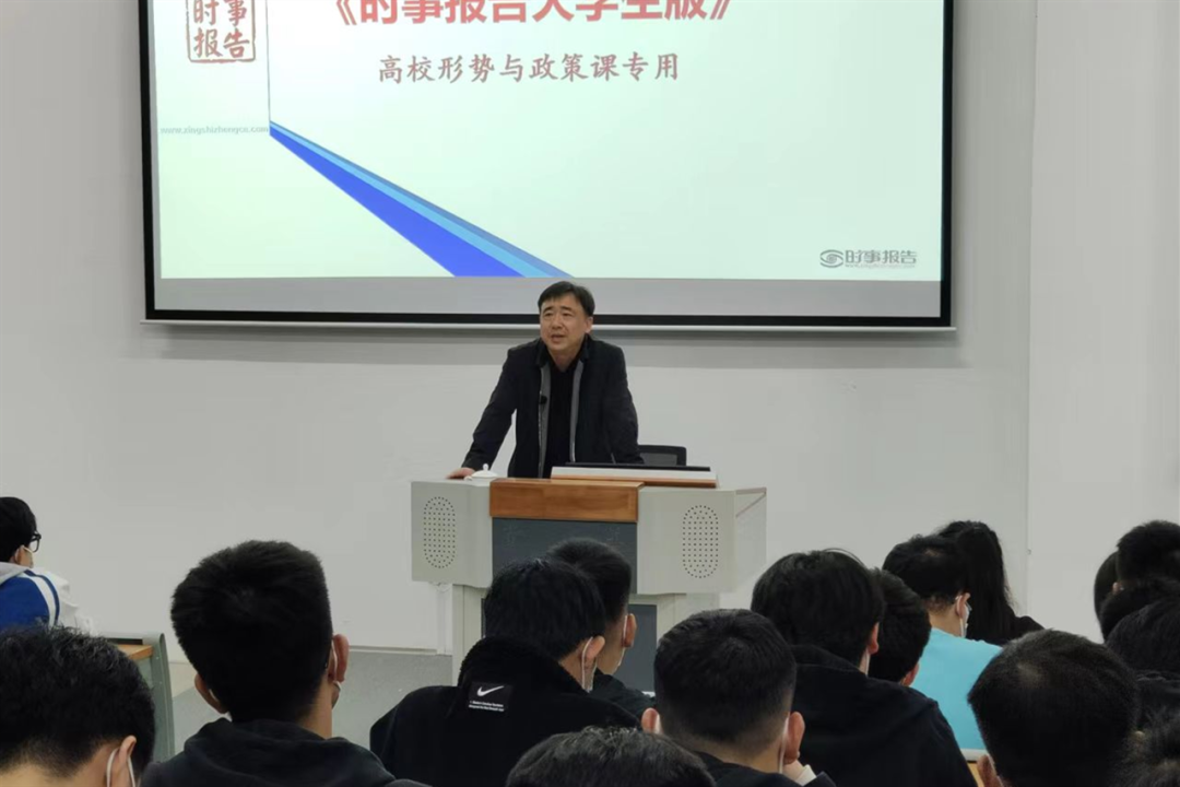 ▲党委委员、工会主席路毅为学生讲授形势与政策课程