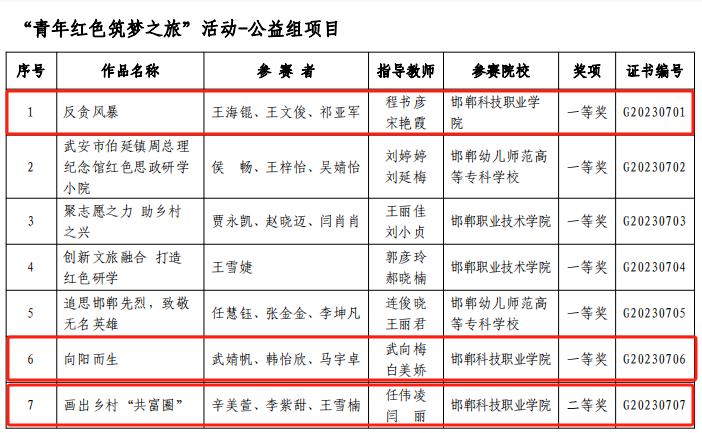 ▲多部思政实践课作品在邯郸市创新创业大赛“青年红色筑梦之旅”中获得优异成绩