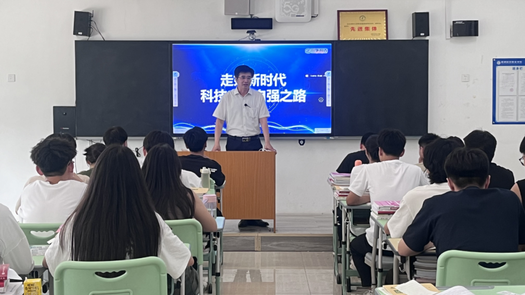 学院党委副书记、院长李鹏丽以“走好新时代科技自立自强之路”为题为学生们带来了一次极具重要意义和战略高度的思政课。他讲到,在当前国际形势复杂多变、科技竞争日趋激烈的背景下,科技自立自强对于国家发展和民族复兴的重要性尤为突出,这是国家强盛之基、安全之要。在新一轮科技革命和产业变革重构全球创新版图、重塑全球经济结构的时代背景下,科学技术从来没有像今天这样深刻影响着国家前途命运和人民幸福安康,科技创新不仅是发展问题,更是生存问题。其次,李鹏丽带领学生们回顾了中国在科技创新方面取得的长足进步,从探月探火、载人航天到“天眼”远望、深地探测,再到超级计算机、人工智能等领域的重大突破,中国的科技实力和国际地位得到了显著提升,而这些成果背后反映的是无数科技工作者的辛勤付出和不懈追求。李鹏丽还带领学生分析了当前中国面临的科技机遇与挑战。一方面,中国在科技创新方面已经具备了坚实的基础和强大的实力;另一方面,也面临着来自外部环境的压力和挑战,因此必须加快科技自立自强步伐,把关键核心技术掌握在自己手中,不断提升自身科研实力。结合我们职业院校的特色,李鹏丽最后向学生们提出几点要求,强调青年学生要勇担责职责使命,认真上好每一节课,不断提升自己的专业知识和技能,同时他还鼓励学生积极投身科技创新事业,为实现中华民族伟大复兴的中国梦贡献自己的一份力量。