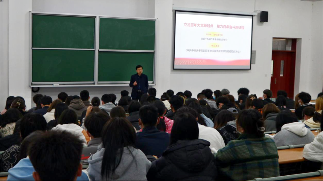 任利民以《十九届六中全会》为主题,结合中华民族伟大复兴的战略全局,为学生详细梳理了中国共产党百年奋斗的辉煌历史,传达了十九届六中全会的伟大精神。同时,结合世界百年未有之大变局,分析了俄乌战争背景下中国应有的战略定力。