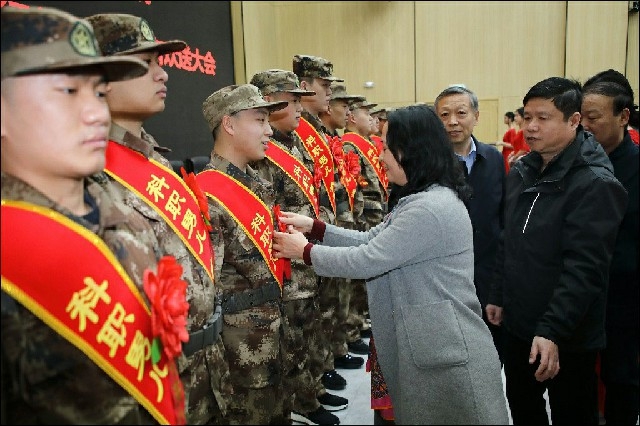 于保国说今年我院在上级党委、政府和人武部的正确领导下,认真执行各级征兵政策,采取有效措施,严格把关,积极完成上级交给我们的征集任务。 于保国向同学们提出了殷殷期望,他说:希望同学们在役前教育期间和到部队后,要尽快转变角色、快速适应部队生活,做老师放心的好学生,父母放心的好儿子;要处处严格要求自己,积极、主动接受系统的军政学习和训练,全面增强保卫祖国的能力,努力把自己培养成为政治合格、军事过硬、纪律严明、作风优良的新时代合格军人;要努力把握机会,做到无论在任何情况下,都能不辜负党和人民的期望,经得起各种风浪的考验,圆满地完成党和人民赋予的神圣使命,为自己和学院多争荣誉、多立新功,用自己的实际行动向学院和家乡父老乡亲交上一份满意的答卷。于保国最后强调,希望同学们在部队的“大熔炉”“大学校”中提高素质,开阔眼界,增强才干,不断把自己锻造成“有灵魂、 有本事、有血性、有品德”的新时代革命军人,为实现中华民族伟大复兴的中国梦贡献力量!