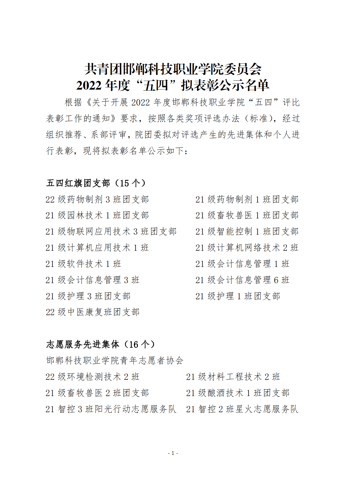 邯郸 科技职业学院2023届优秀毕业生公示名单