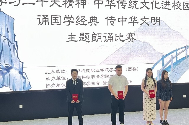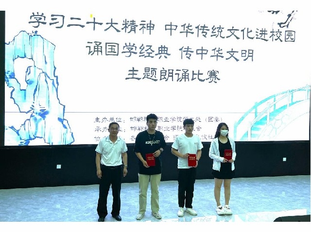 参赛选手用慷慨激昂、生动的表现,为现场的观众呈现出了一场精彩非凡的朗诵比赛,展现了科职学子积极传承与弘扬我国优秀的传统文化的青春风采。