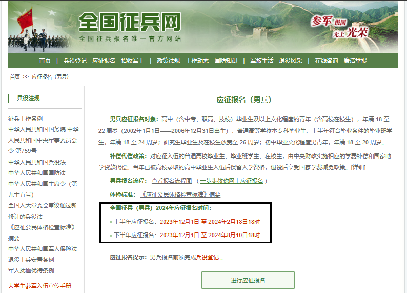 征兵报名唯一官方网站: